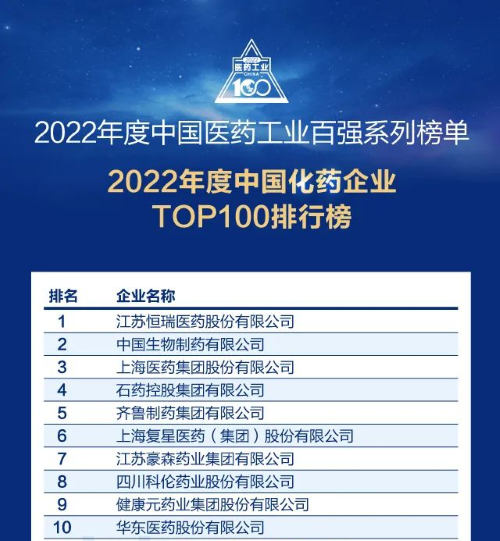 佳音频传!DB真人医药再次蝉联中国化药企业百强榜首
